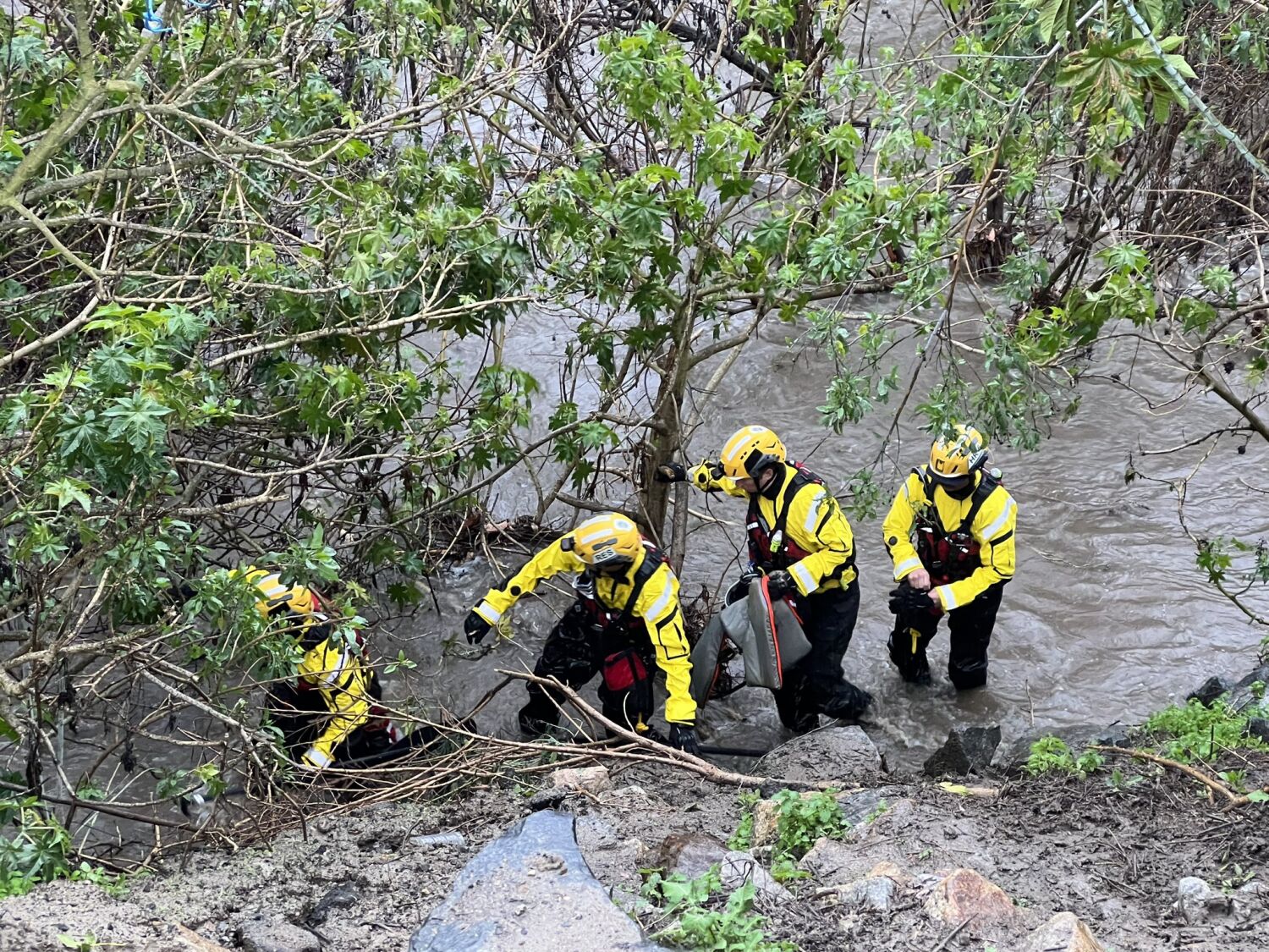 The county’s Hearth Authority acquired a misery name at 3:28 p.m. and dispatched an air and floor crew to a flooded creek close to the 24400 block of Christina Courtroom in Laguna Hills.