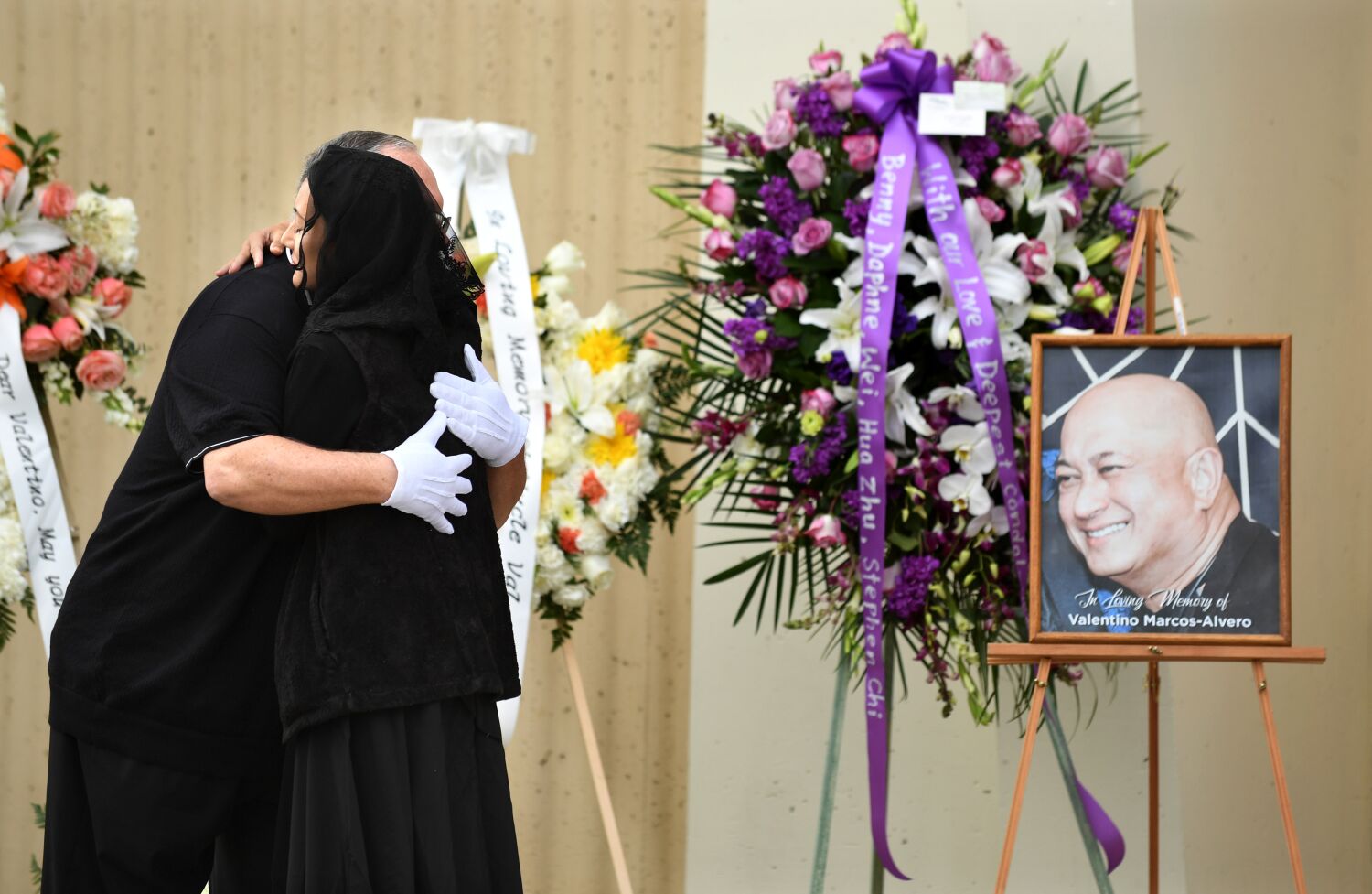 Funeral companies are held for Valentino Alvero at St. Stephen Martyr Catholic Church, not removed from the Star Ballroom Dance Studio the place he died.